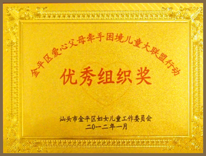 金平區(qū)愛心工作委員會優(yōu)秀組織獎